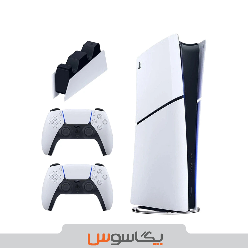 کنسول بازی سونی مدل PlayStation 5 Slim نسخه دیجیتال با دسته اضافی و پایه شارژر