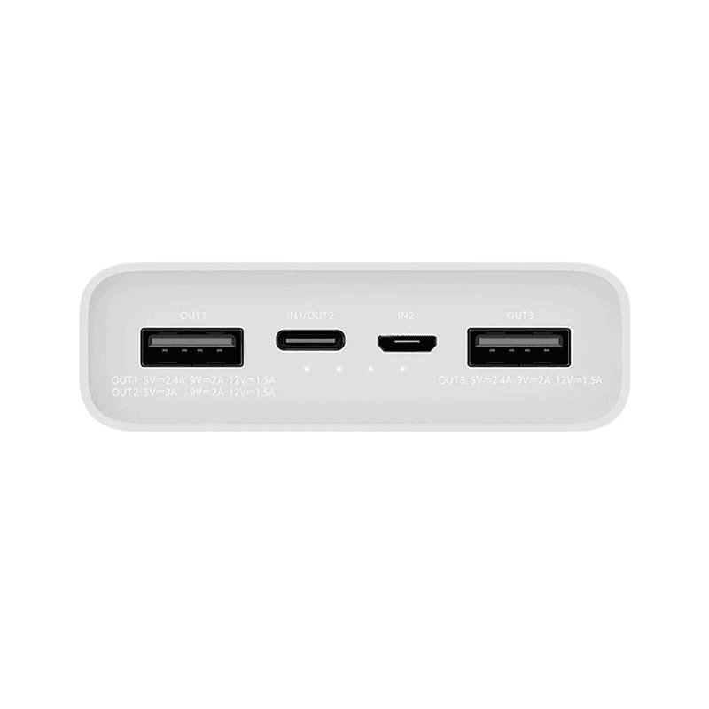 پاوربانک شیائومی PLM18ZM از نظر تعداد پورتها و نوع آنها یکی از کاملترین پاوربانکها در این رده قیمتی بهشمار میرود. این محصول به دو پورت خروجی USB-A مجهز است که امکان شارژ همزمان دو دستگاه را فراهم میکند.